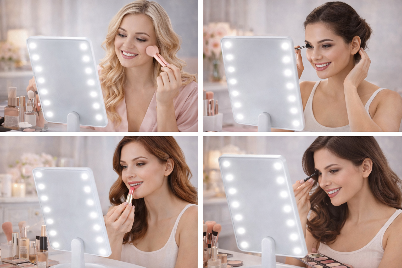 💬 “El espejo con luz LED es PERFECTO 💖 puedo maquillarme con una iluminación profesional en casa.” — Florencia M.